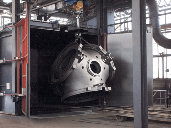 拋丸機清理室內熱區采用軋制Mn13 板防護,相對于以前的橡膠板防護,其使用壽命大大提高,且外形美觀、易于更換,是當今相對流行的清理機室體防護方式。